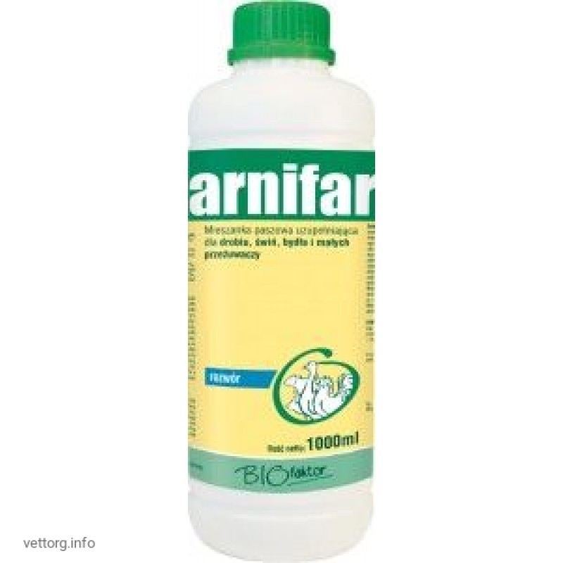 Карнифарм слід застосовувати у птахів для вирівнювання розвитку на етапі інтенсивного росту і відгодівлі. Його систематичне застосування скорочує період відгодівлі курячих, гусячих, индеечных бройлерів, зменшує кількість застосовуваного корму на 1 кг приросту ваги тіла і дозволяє домогтися в короткий термін високої несучості та її збереження на тривалий період. Препарат застосовується при слабкій заплідненості яєць, низької виводимості, високому рівні завмирання ембріонів, з метою обмеження втрат за забракованности яєць. Півням препарат слід давати при слабкій продукції сперматозоїдів і зниження їх живучості. Карнифарм можна давати несучкам.