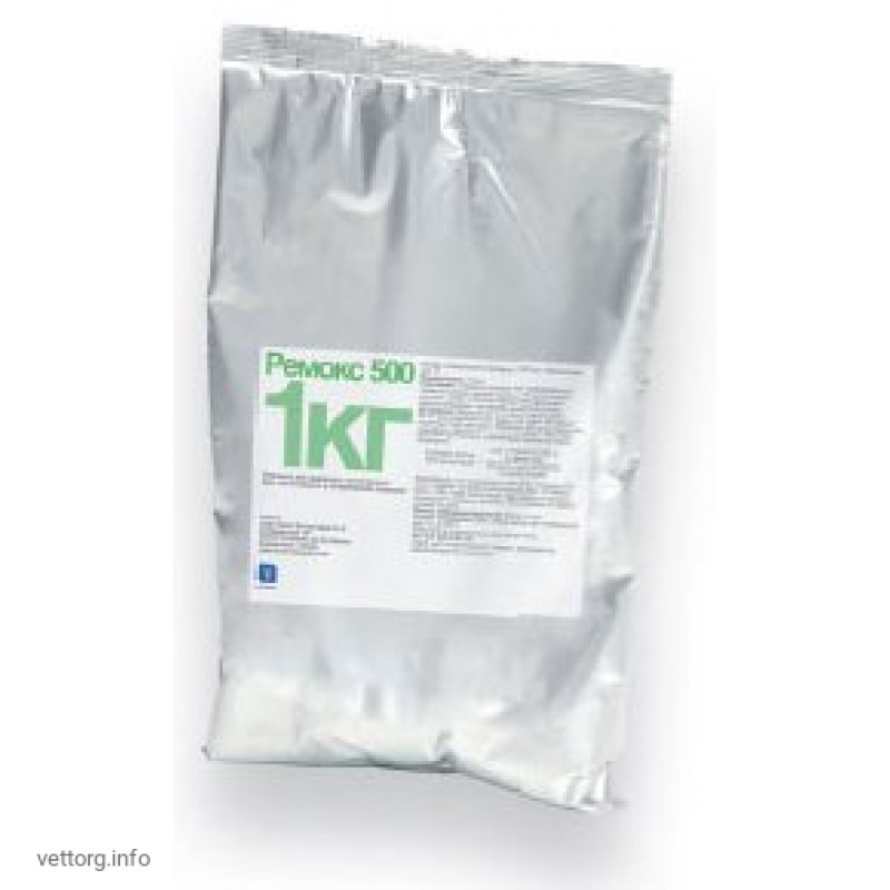 Враховуючи, що споживання становить близько 10% маси тварини, ця доза еквівалентна 400 г РЕМОКСА 500 до 1000 літрах питної води. Цієї кількості розчину лікарського продукту вистачає на лікування 10000 кг свиней на добу.