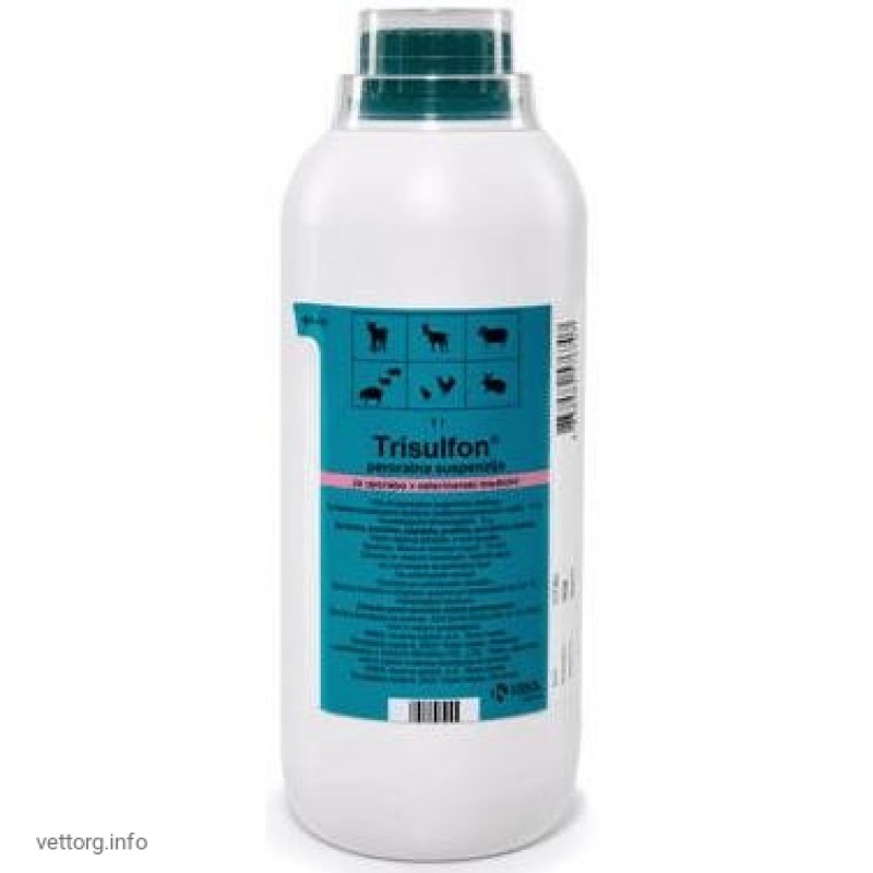 телята, ягнята, лошата, кози, свині - від 15 до 30 мг активної речовини на 1 кг маси тіла, що відповідає 1-2 мл суспензії Трисульфону на 32 кг маси тіла (або 50 мл на 100 л питної води). Препарат необхідно додавати у питну воду протягом 5 днів.