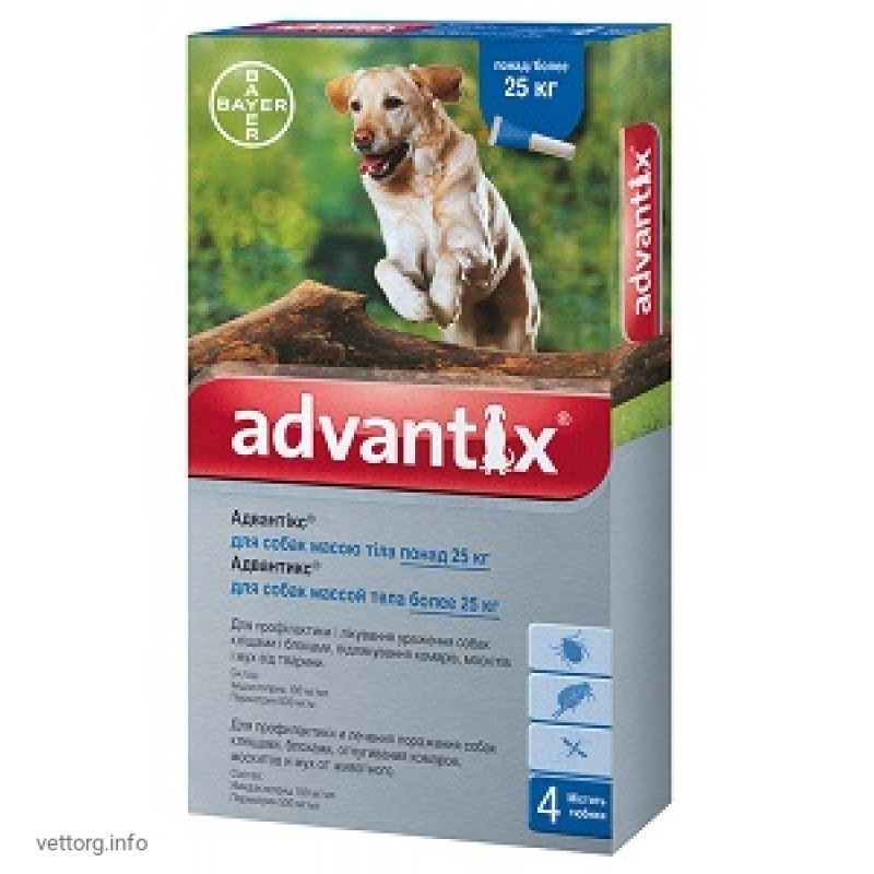 | 25-40 | Адвантікс® (для собак від 25 кг і більше) | 4,0 | 10-16 | 50-80 |