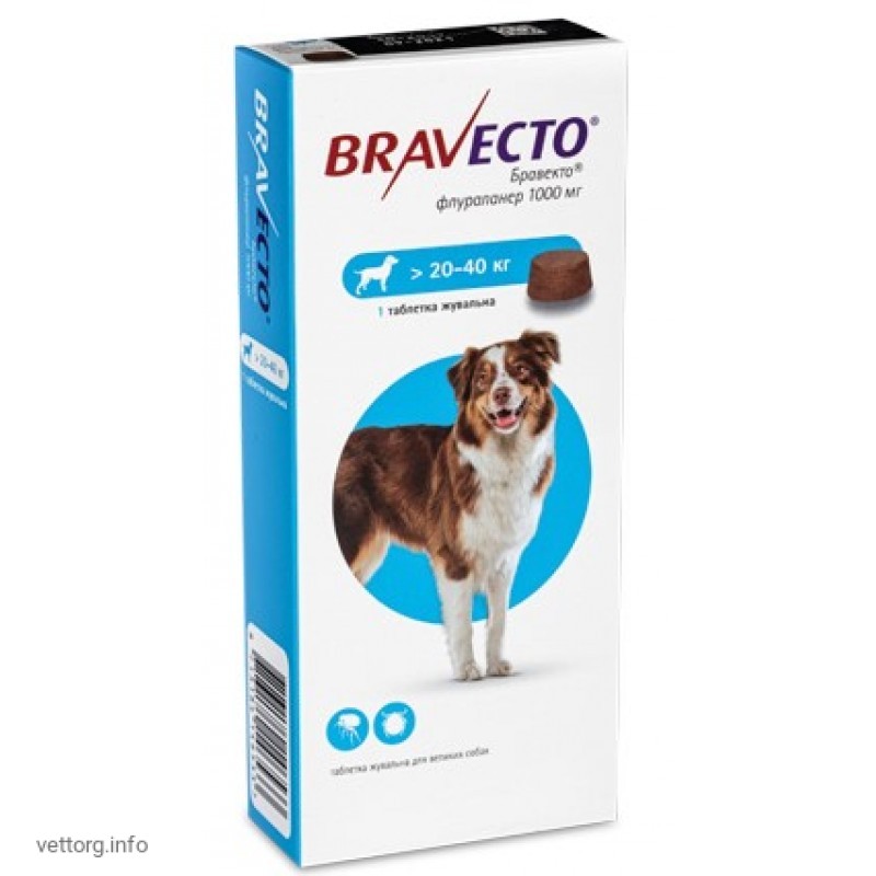 Бравекто® (жевательная таблетка), вес собак 20-40 кг. (MSD Animal Health)