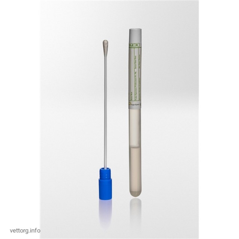 Транспортний тампон із середнім середовищем, гнучка паличка PS з віскозним наконечником, кольоровий код синій, одноразова упаковка, готовий до друку np, стерильний R, CE / IVD