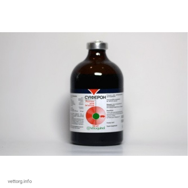 Суіферон - комплексний препарат, який поповнює запаси заліза, активізує процеси кровотворення, підвищує вміст гемоглобіну в еритроцитах. Залізо через специфічні рецептори на мембранах проліферуючих еритроїдних клітин надходить всередину клітини. Нормалізація процесів кровотворення сприяє підвищенню резистентності організму. Із місця ін’єкції декстран заліза всмоктується в кров, депонується в клітинах печінки, ретикулоендотеліальної системи, м’язової тканини і поступово витрачається для синтезу гемоглобіну. Основна частина заліза абсорбується протягом 72 годин, решта - поступово вивільняється у наступні 3-4 тижні. Мікроелементи і вітаміни позитивно впливають на засвоєння організмом заліза та регулюють обмін речовин. Білки плазми крові свиней (насамперед, іммуноглобуліни) сприяють розвитку пасивного імунітету та неспецифічної резистентності організму.