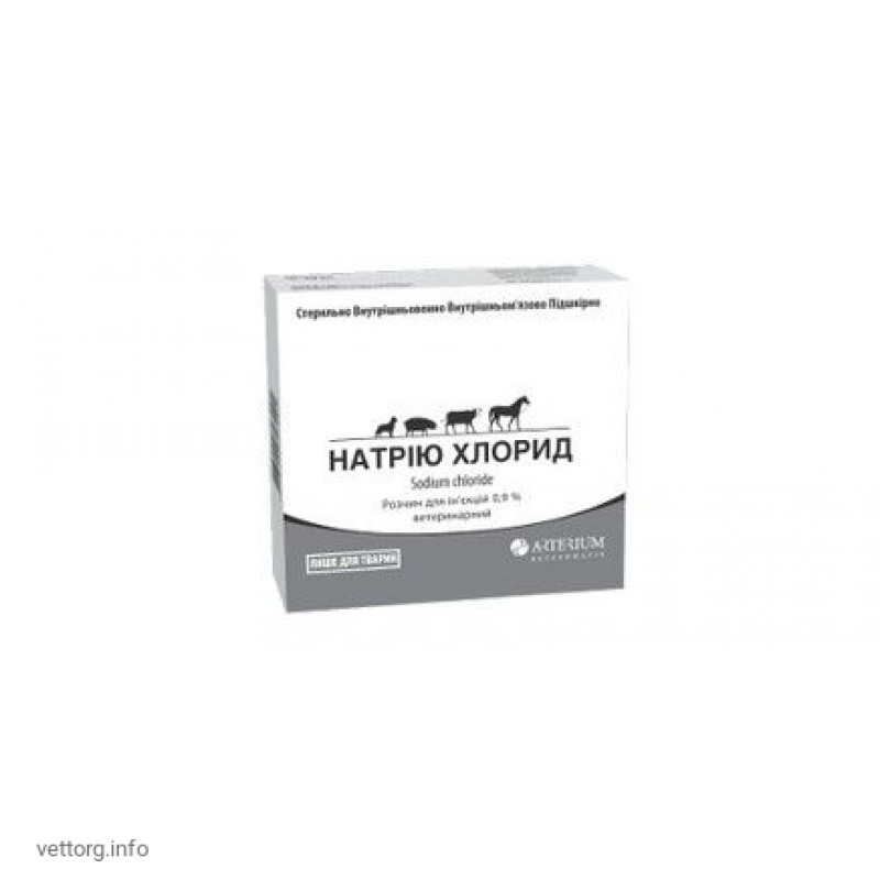ATC-vet класифікаційний код: QB05 Кровезамещающие та перфузійні розчини. Нормалізує порушений водно-сольовий гомеостаз, в основному при зменшенні об'єму рідини в організмі. Має дезінтоксикаційну та регидратационное дію, підтримує і регулює осмотичні процеси та вміст рідини. Поповнює дефіцит натрію при різних патологічних станах. 0,9 % розчин натрію хлориду ізотонічний плазмі крові, тому швидко виводиться із судинного русла, лише тимчасово збільшуючи об'єм циркулюючої крові. Виводиться з організму нирками.