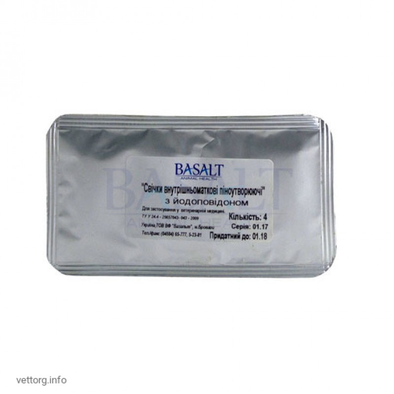 Свічки внутрішньоматкові піноутворюючі з йодоповідоном № 4 (Базальт)