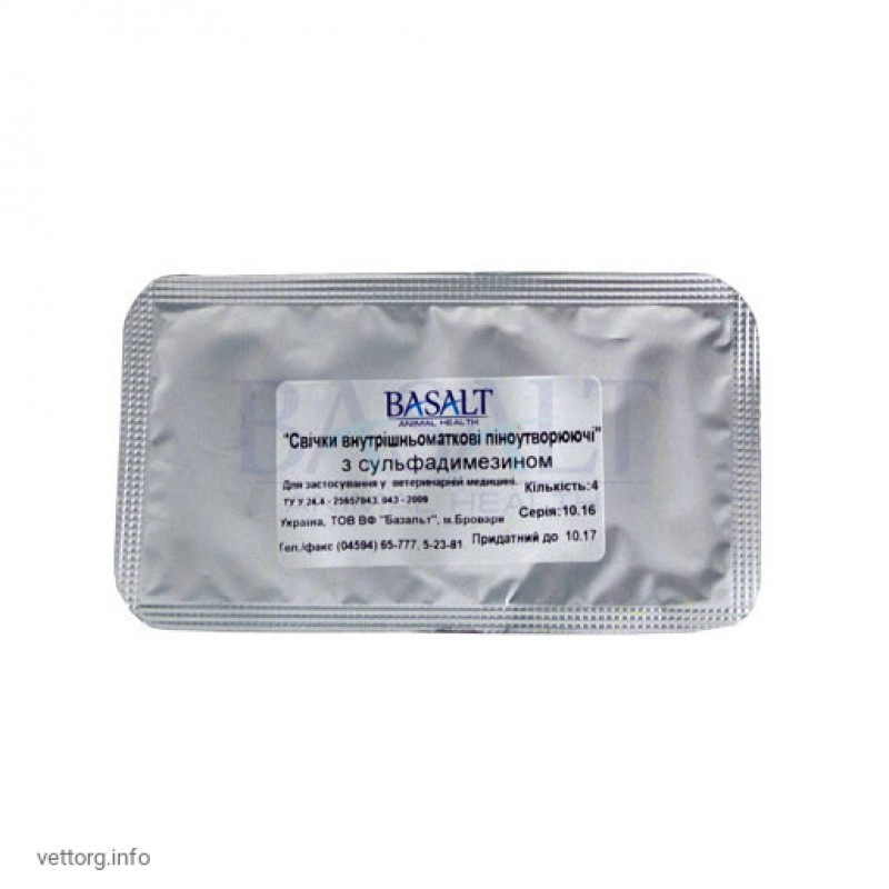 Свічки внутрішньоматкові піноутворюючі з сульфадимезином № 4 (Базальт)