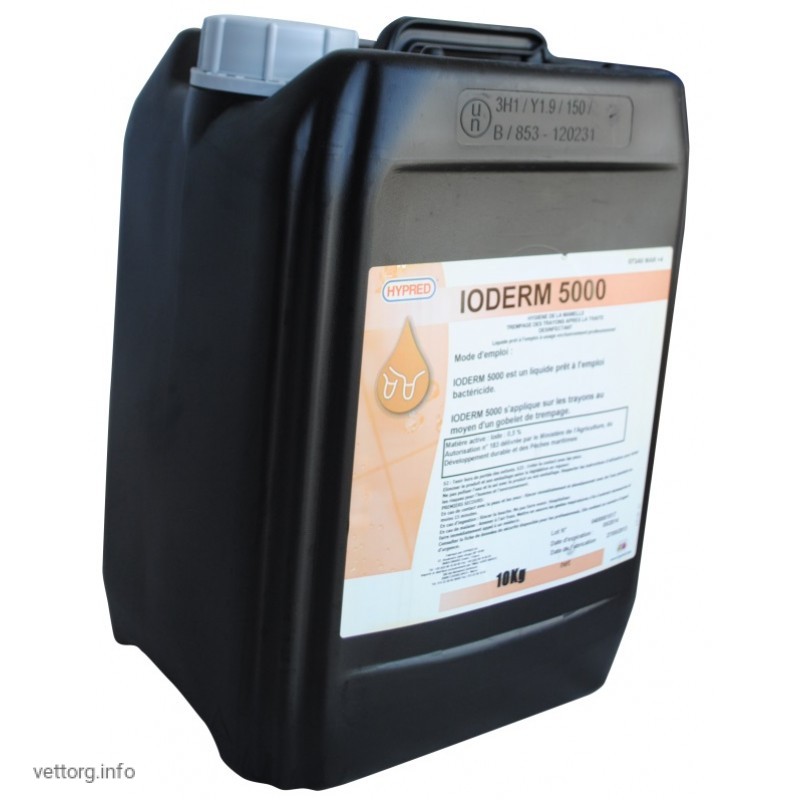 Йодерм 5000 (Ioderm 5000) являє собою готовий до використання засіб з вмістом активного йоду 5000 ррм (0,5%) по догляду за вименем, призначений для застосування після доїння. Препарат закриває сосковий канал, створює безкраплинну бар'єрну плівку і захищає його від вторгнення бактерій.