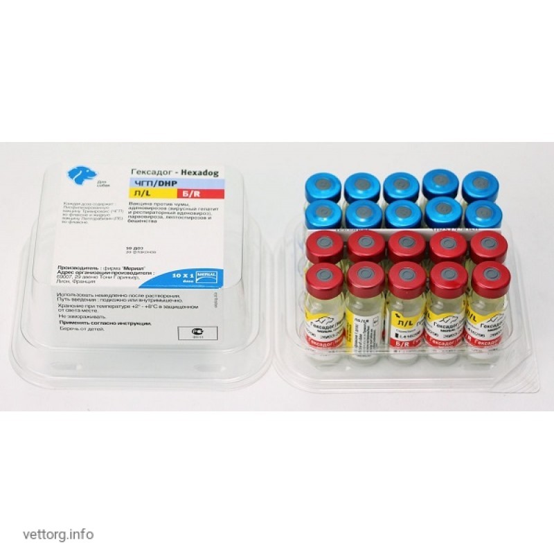 Гексадог (Hexadog) - вакцина проти чуми, аденовірозів, парвовірозу, лептоспірозу та сказу собак.