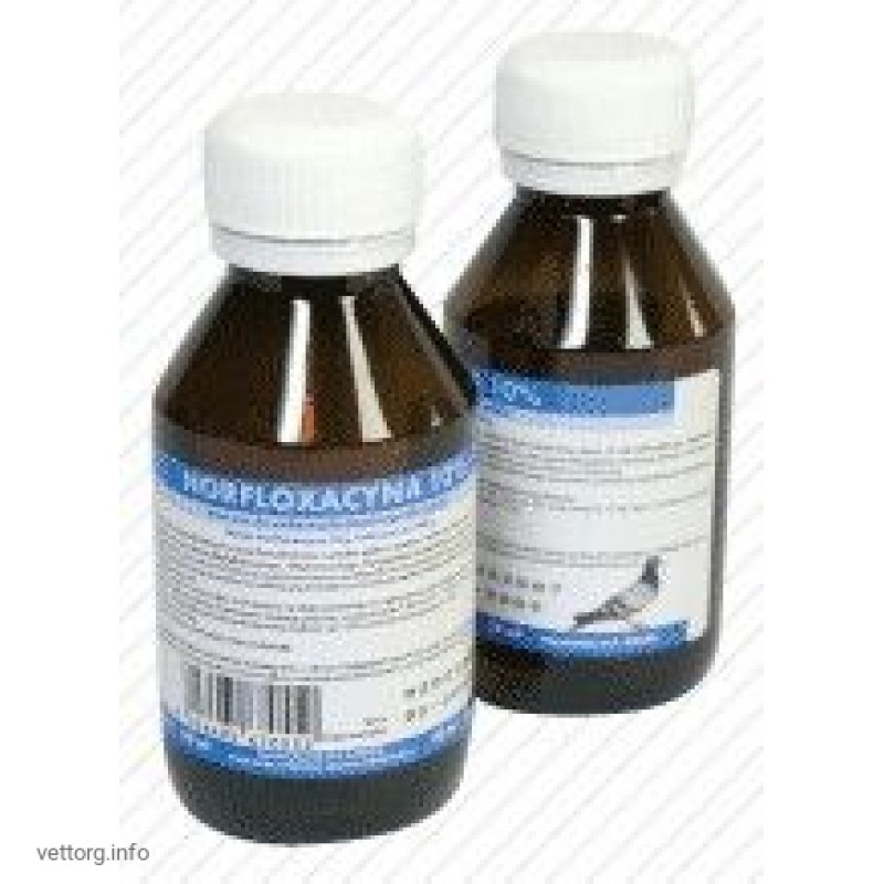 Голуби: 100-150 мл на 100 л воды (80-150 мгр норфлоксацина на 10 кг массы тела животного), ежедневно, давать вместе с водой в течении 3-4 дней.
