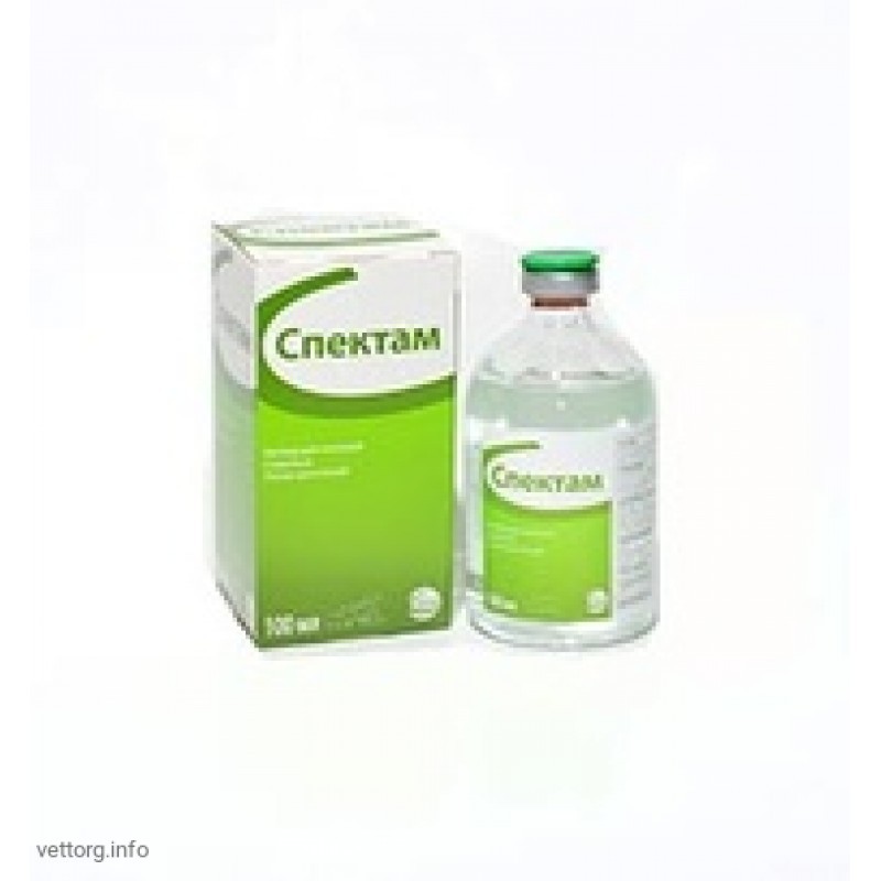 Собаки та коти: лікування тварин при захворюваннях органів дихання, травного каналу, що спричинені мікроорганізмами, чутливими до спектиноміцину.