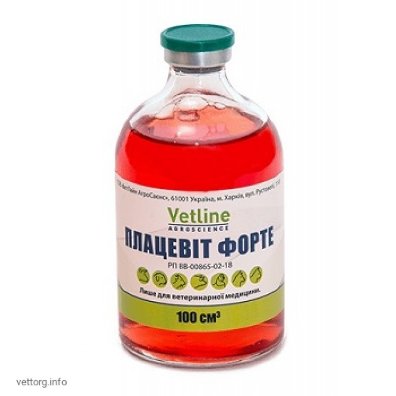 ATCvet QL03A - імуностимулятори. Плацевит Форте є комплексним імуностимулюючу препаратом. Завдяки наявності у своєму складі екстракту плаценти, збалансованого комплексу амінокислот, вітамінів і мікроелементів відновлює метаболічні процеси в організмі продуктивних с/х тварин, хутрових звірів, собак, котів і птиці підвищує природну резистентність. Препарат має дезінтоксикаційну та імуномодулюючу дію, підвищує рівень бактерицидної активності сироватки крові та збереження і приріст живої маси молодняку, компенсує дефіцит біологічно активних речовин в організмі продуктивних с/х тварин, хутрових звірів, собак, кішок і птиці, що виникає внаслідок перенесення захворювання і проведення профілактичних щеплень і дегельминтизаций, забезпечує стійкість організму тварин до надмірного навантаження під час транспортування, вакцинації, зміни раціону тощо.
