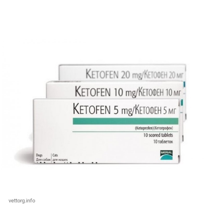 Кетофен в таблетках призначають собакам і кішкам в якості протизапального, анальгізуючого і жарознижуючого засобу при гострих і хронічних захворюваннях опорно-рухового апарату, в тому числі артрозах, артритах, травмах, грижах міжхребцевих дисків, для зняття запальних і больових реакцій після оперативних втручань.