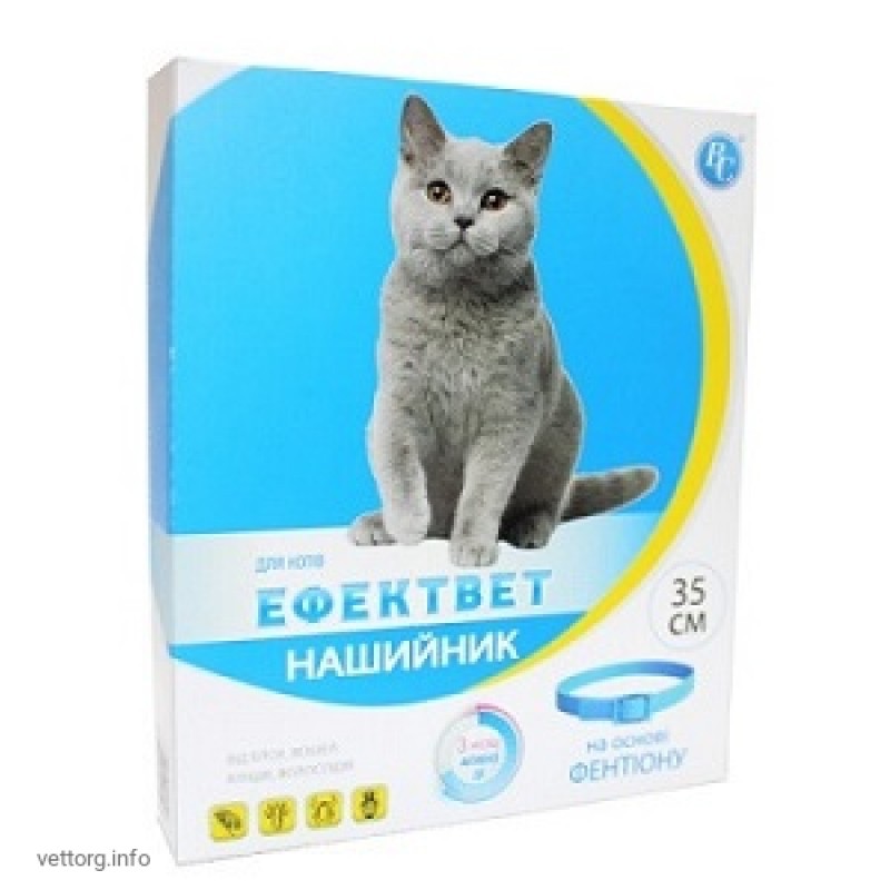 Профілактика і лікування котів при поразці ектопаразитами: блохами (Ctenocephalides felis), вошами (Linognathides spp.), кліщами (Demodex canis, D. felis, Otodectes cynotis), волосоїдами (Ttrichodectes canis), чутливими до фентіону.