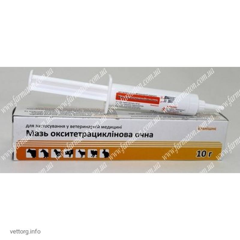 Лікування великої рогатої худоби, коней, овець, кіз, свиней, собак, котів та кролів, хворих на кон’юнктивіт, кератит, виразку рогівки та інших захворювань очей, що спричинені мікроорганізмами, чутливими до окситетрациліну