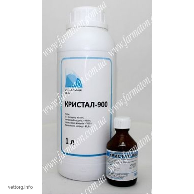 Дезінфекцію робочими розчинами “Кристалу-900” проводять після ретельного очищення поверхонь у приміщеннях, обладнання, транспортних засобів, інвентарю тощо згідно з “Інструкцією з проведення ветеринарної дезінфекції об’єктів тваринництва”, затвердженою Головним управлінням ветеринарії Держагропрому СРСР від 25.08.1988 р.