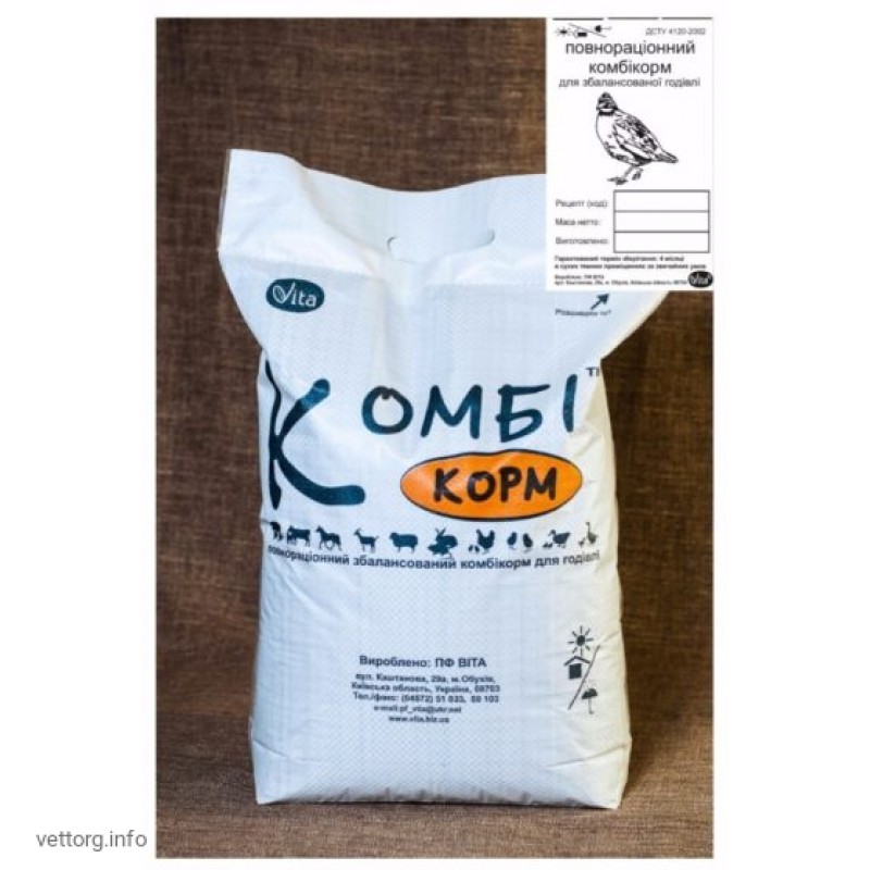 КОМБІкорм Перепілка Несучка 28 днів +( крупка), 20 кг. (ВІТА)