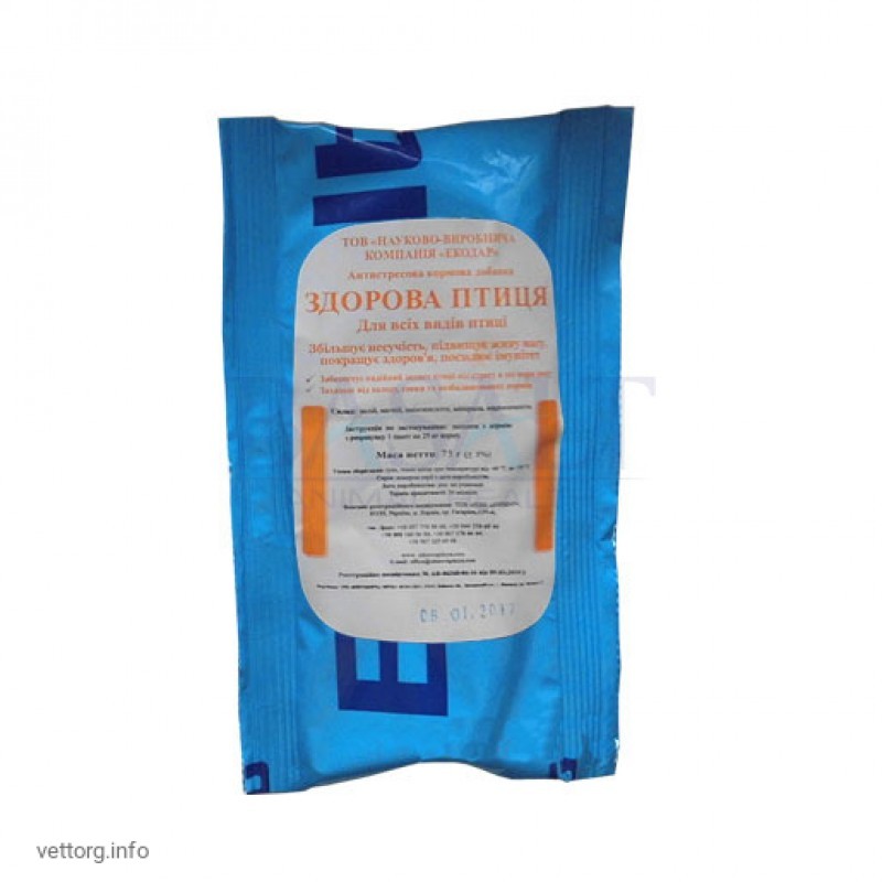антистресова кормова добавка, яка усуває всі види стресу. "ЗДОРОВА ПТИЦЯ" володіє потрійним механізмом дії завдяки наявності калію, магнію і гліцину - компонентів з прямим антистресовим ефектом: